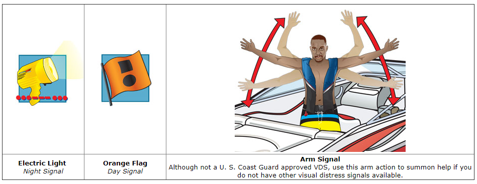 Visual Distress Signals (VDSs) allow boat operators to signal for help in the event of an emergency. VDSs are classified as day signals (visible in bright sunlight), night signals (visible at night), or both day and night signals. VDSs are either pyrotechnic (smoke and flames) or non-pyrotechnic (non-combustible).