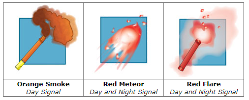 - Three orange smoke signals (day only) and one electric light (night only).