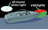 The required navigation lights differ depending on the type and size of your boat. The common lighting configurations for recreational boats are shown below. U. S. Coast Guard's "Navigation Rules" has other configurations and requirements for larger boats.